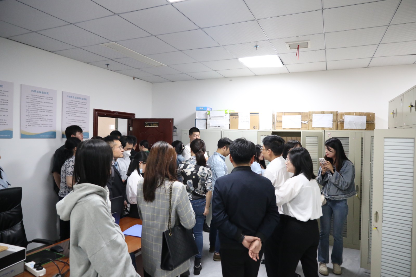 緊接著大家共同參觀了檔案室。余主任充分肯定了學(xué)校在臺(tái)賬管理方面的規(guī)范和嚴(yán)謹(jǐn)。